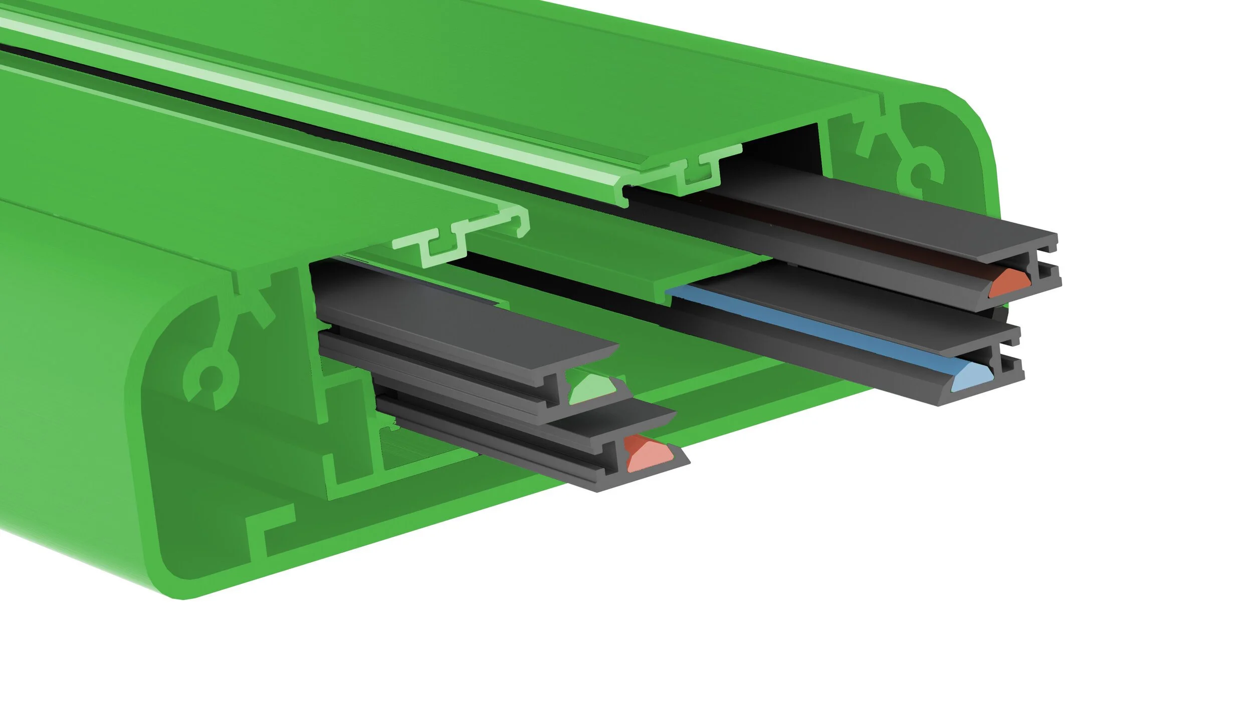 The opening of the track is flanked by our Patented Active Grounded Shield.