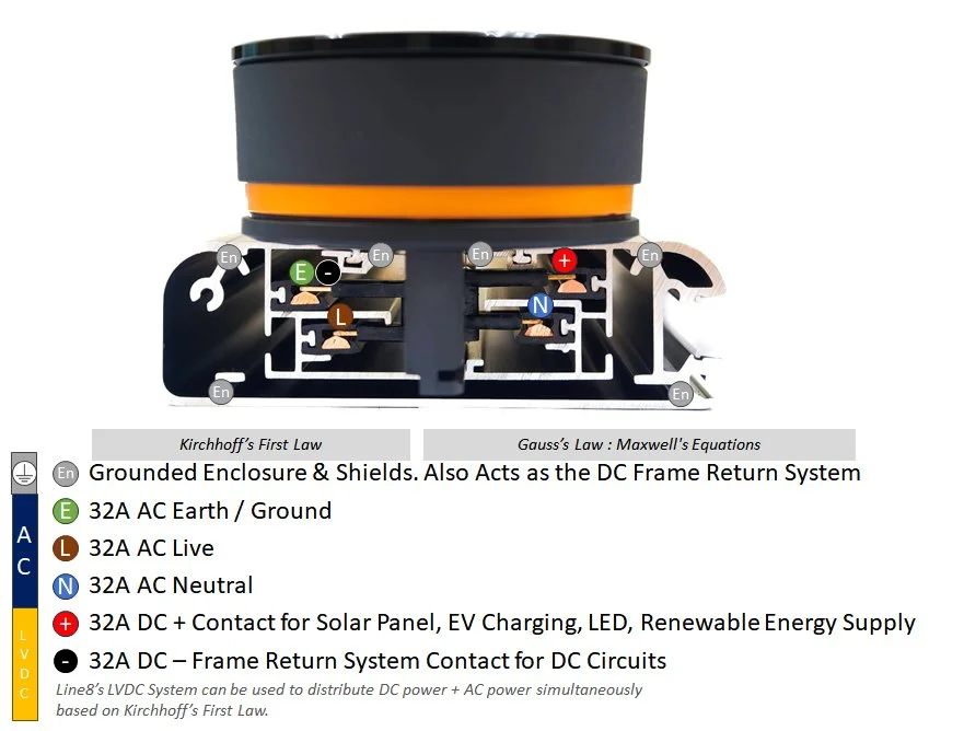 The Line8 Standard: Every Line8 adaptor features 4 robust pins. This ensures a high-capacity, physical connection for Live, Neutral, DC, and a full sized Earth system that exceeds the rated power of the track current capacity.